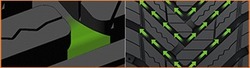 Om de prestaties in de winter te maximaliseren, verhogen de gekartelde groefranden de contactpunten met de grond.
